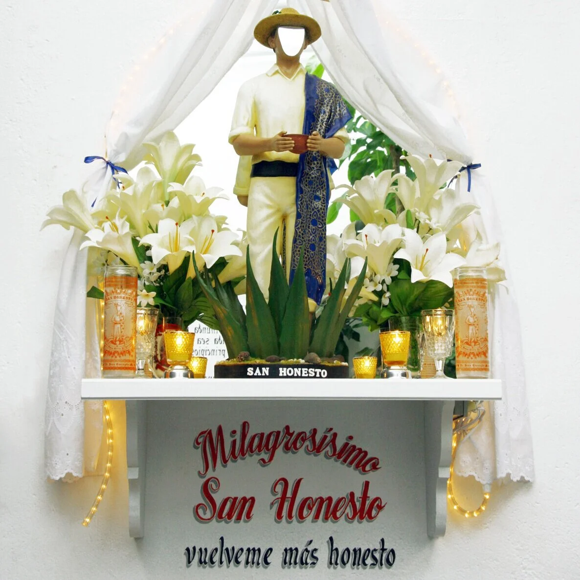 Fiesta: 9 de Diciembre, Día International contra la CorrupciónSanto patrón contra la corrupción, protector de mordidas y mentiras, defensor de la verdad. La cara de San Honesto refleja la imagen de quién le reza. Ciudadanos del mundo pueden regalar a San Honesto para despertar un cambio de conciencia y finalmente de comportamiento